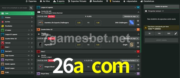 O 26a com oferece uma grande seleção de opções de apostas em e-sports com probabilidades competitivas